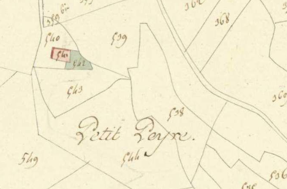 La première mention du lieu Petit Peyre le positionne comme une extension de Cenoux : il s’agit de l’acte de baptême de Pierre Muthuon, en 1709. Par la suite, et tout au long du 18e siècle, seuls des membres de cette famille habiteront ce lieu.
