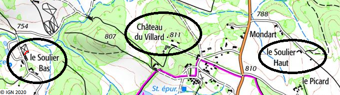 Compte tenu de la disposition géographique des deux lieux, Soulier Bas, et Soulier Haut, on est tenté de faire l’hypothèse qu’il s’agissait alors de deux entrepôts appartenant au domaine du Villard (voir article Le Villard).