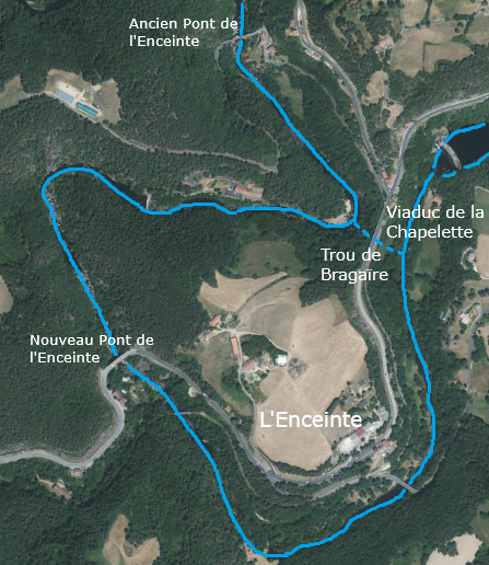 A l’entrée du site de l’Enceinte, le viaduc de la Chapelette réuni deux ponts, un pont routier et un ancien pont ferroviaire, ce dernier étant maintenant utilisé par la Via Fluvia. C’est sous cette structure que nous nous rendons pour une rencontre avec Lo Bragaire, un personnage dont le nom reste associé au lieu.