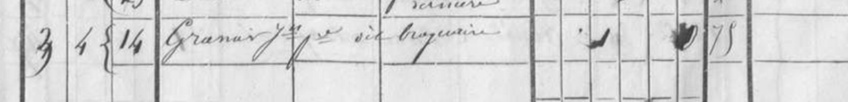 Le recensement de Grazac de 1846 permet de confirmer que ce lieu est bien la résidence de notre personnage, il y apparait dans l’extension du lieu-dit La Baraque : « Jean-Pierre Granair, dit bragaire » 2 . On supposera que son nom d’état civil était Jean-Pierre Garnier et qu’il a lui-même revendiqué celui de Granair. On apprend qu’il est veuf, est âgé de 75 ans et partage une maison avec un ménage de 9 personnes, une famille Delolme.